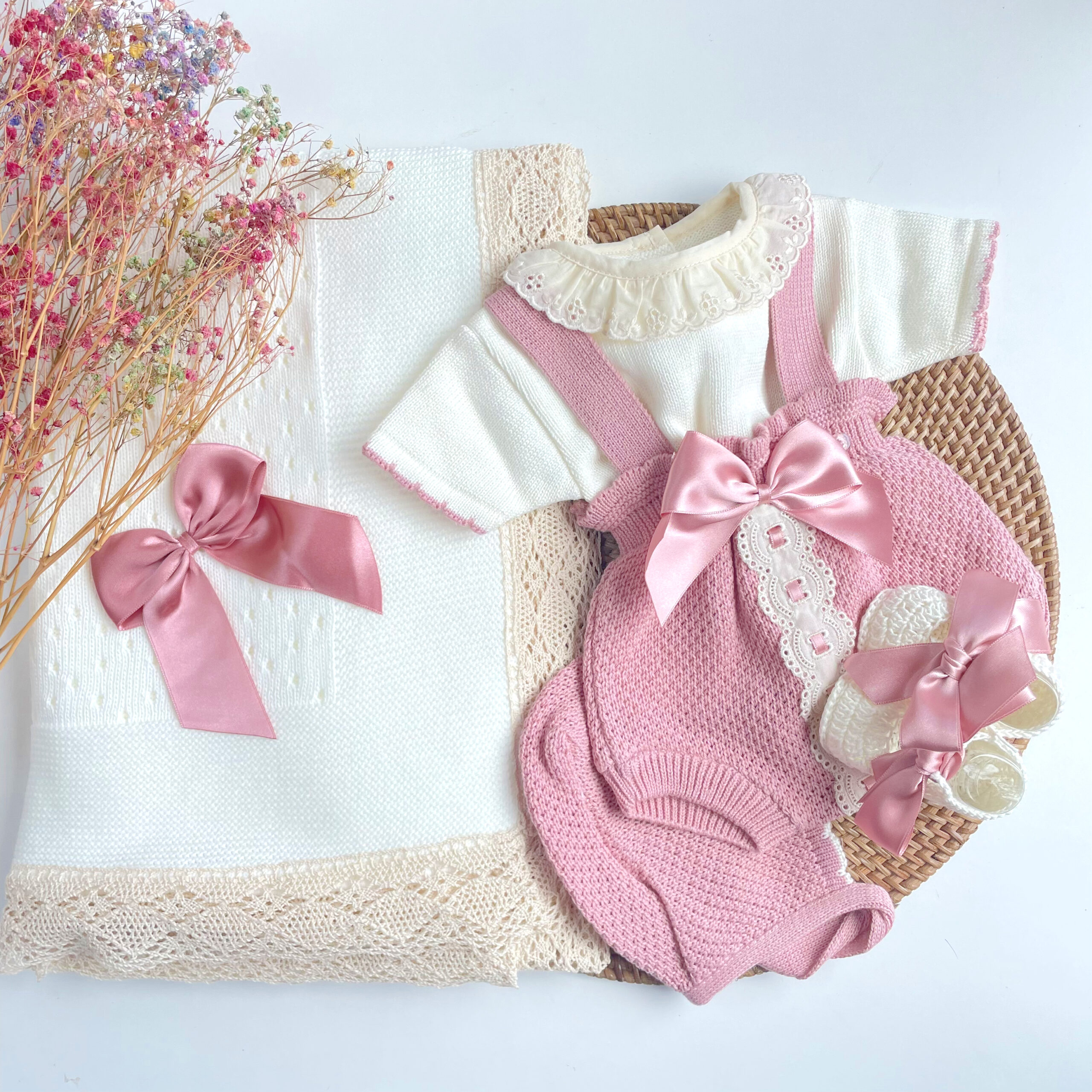 Pack de ranita Adriana con toquilla puntilla, ideal para vestir al bebé en sus primeros meses de vida.