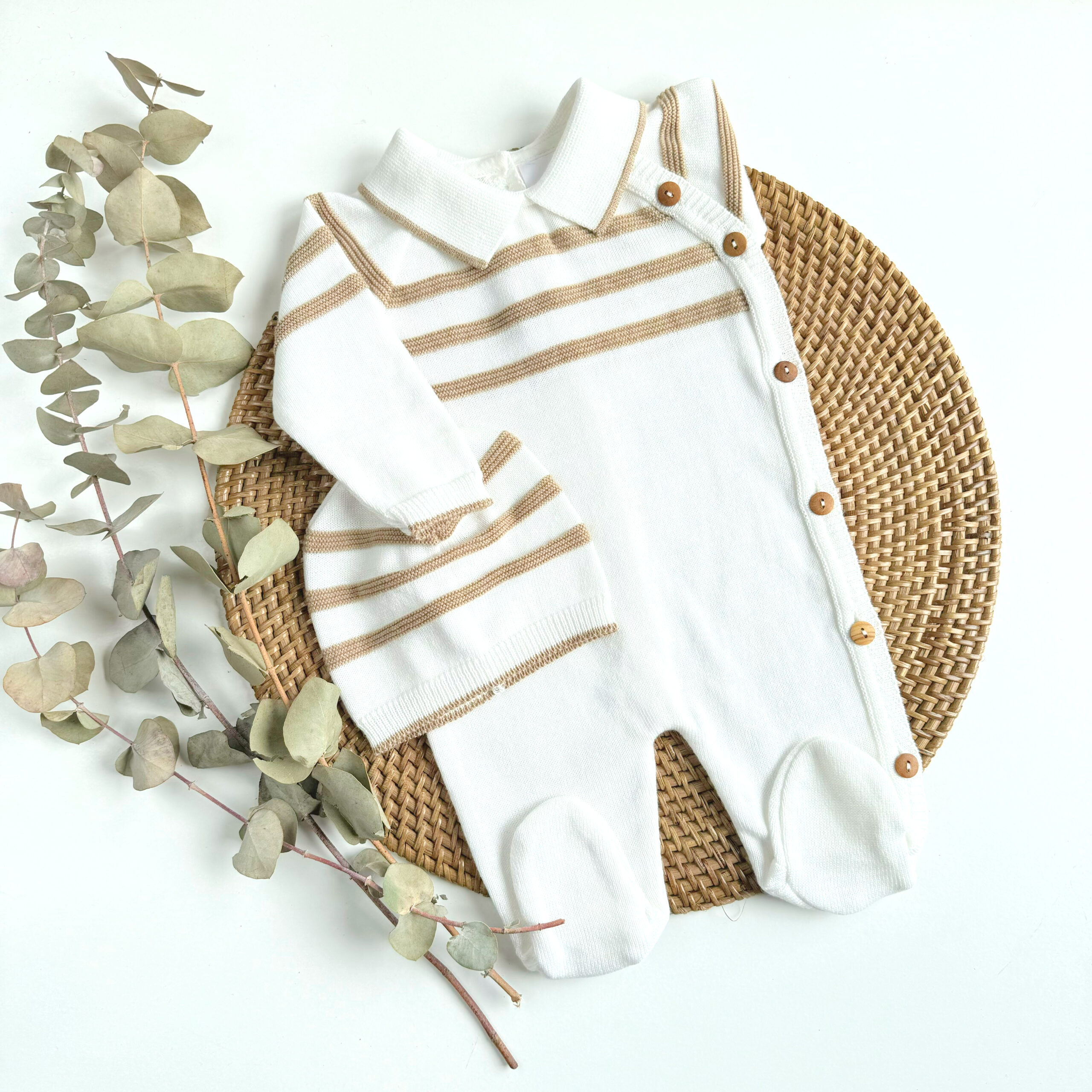 Se abrocha por la parte trasera con botones para que se pueda vestir y cambiar con facilidad al bebé.