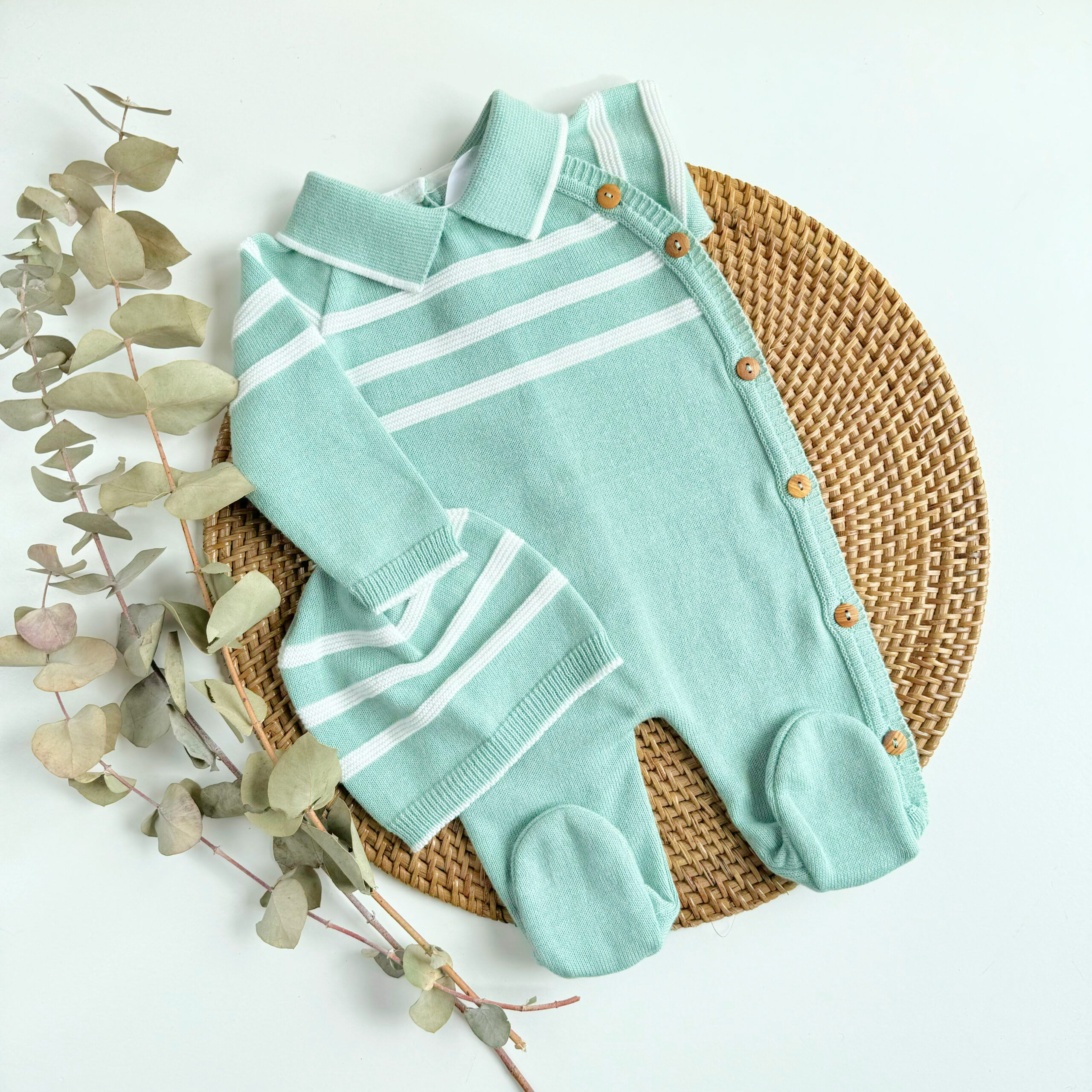 Se abrocha por la parte trasera con botones para que se pueda vestir y cambiar con facilidad al bebé.