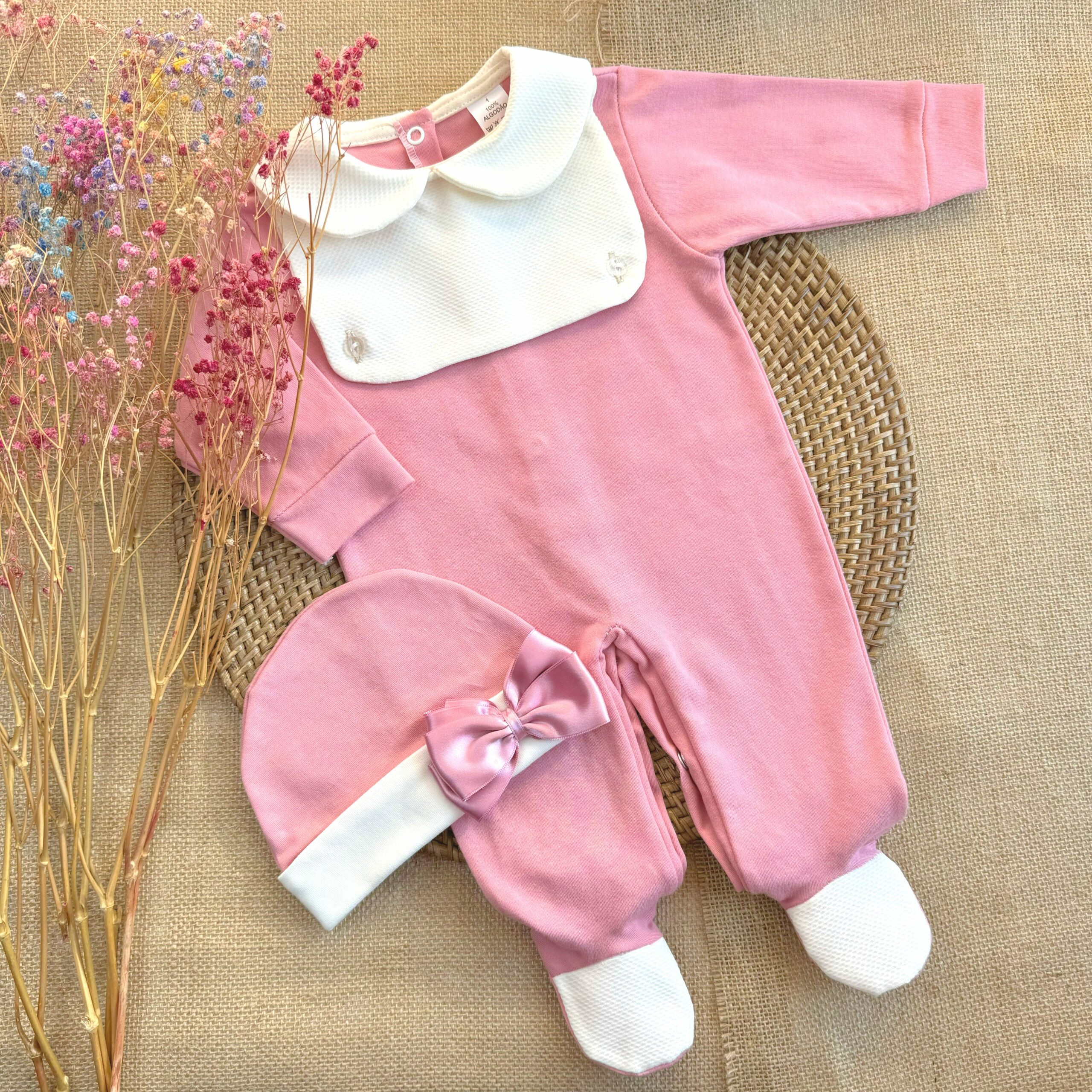 Pijama Babero Piqué Rosa Viejo Perla con Lazo