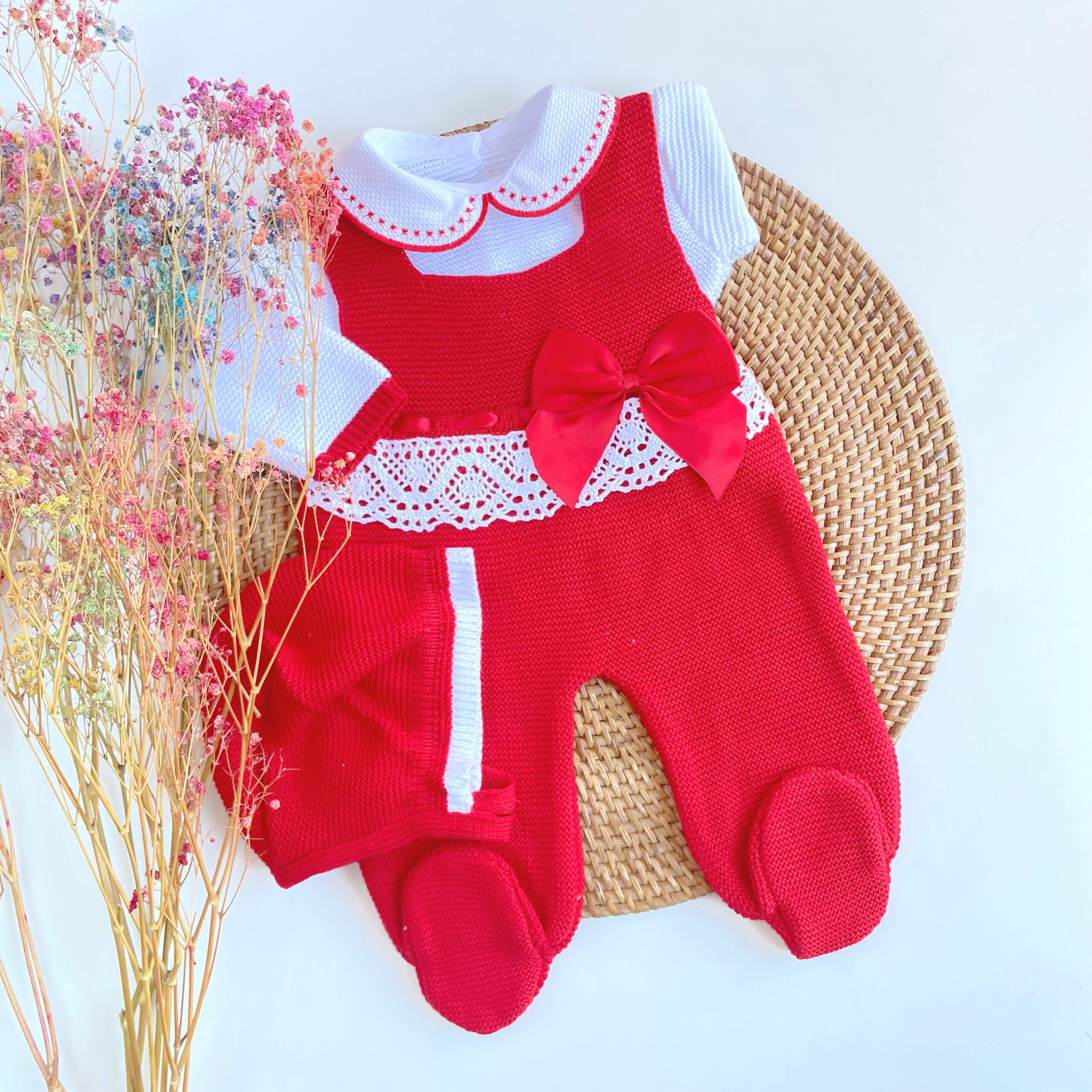 Primera puesta para vestir a la bebé en sus primeras semanas de vida. Peto en talla única 0-3 meses, con jersey y capota a juego.