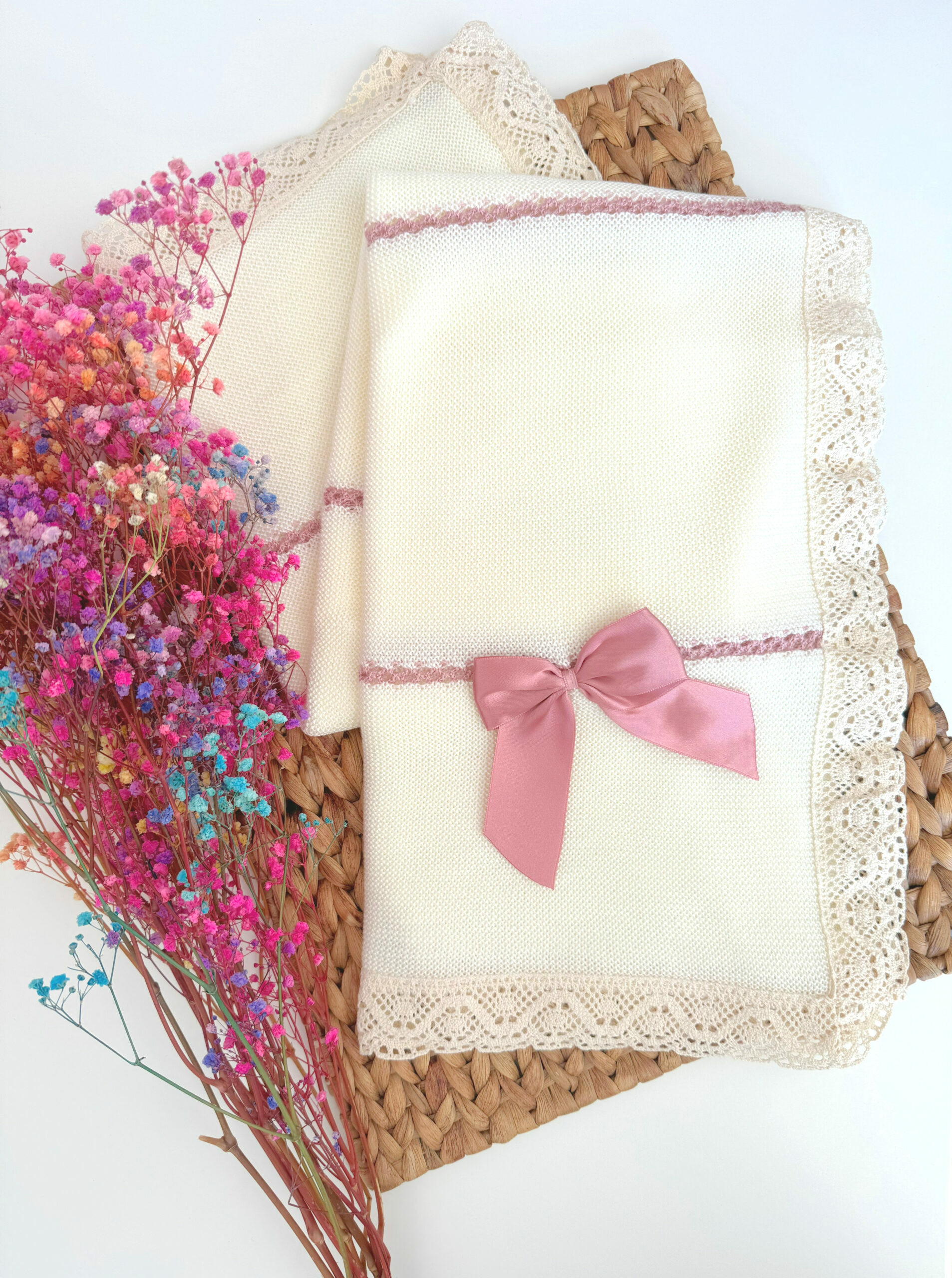 Muy suave y amorosa, ideal para arropar al bebé en cualquier momento, a la salida del hospital, en el carrito o en brazos de paseo.
